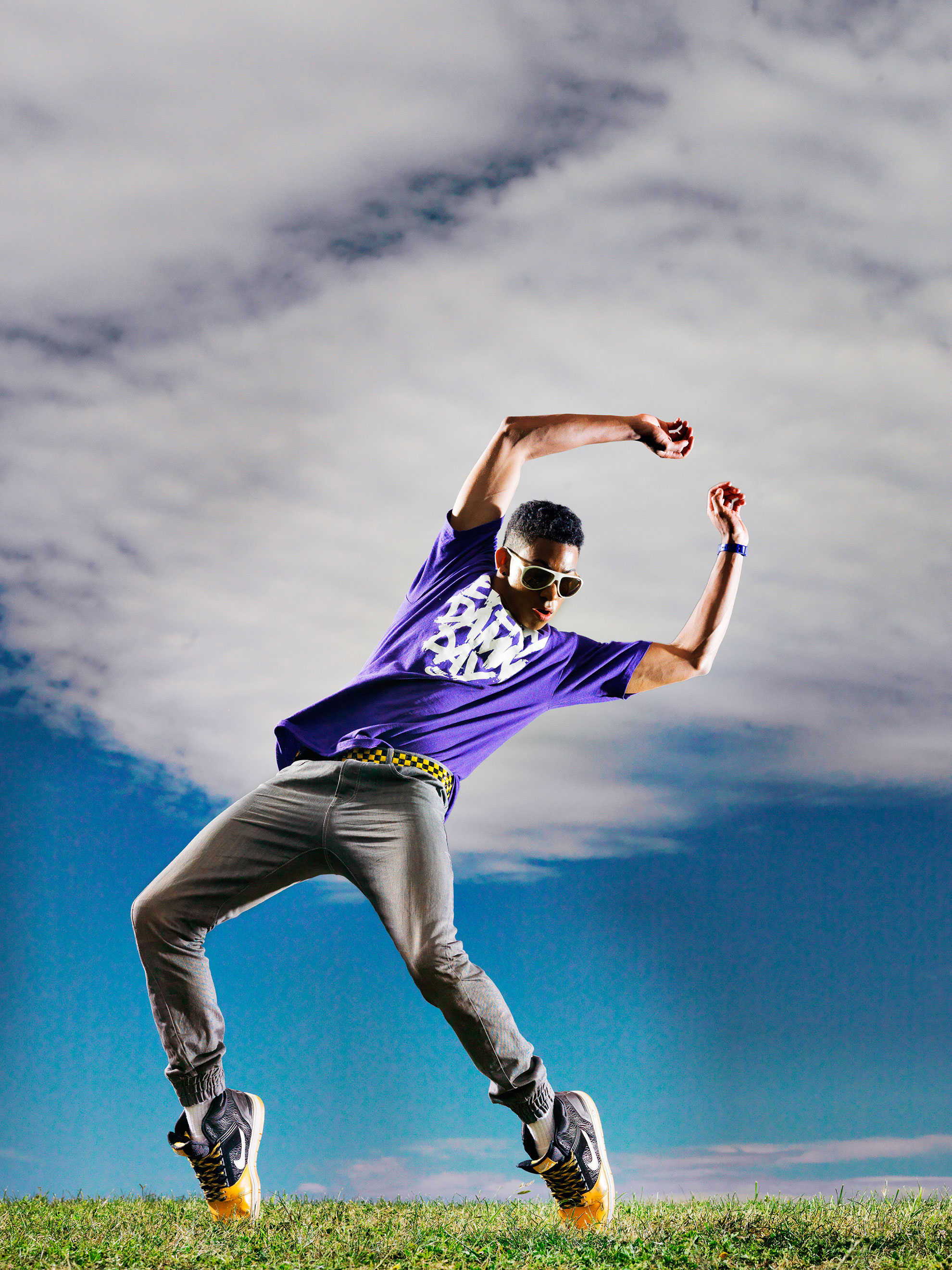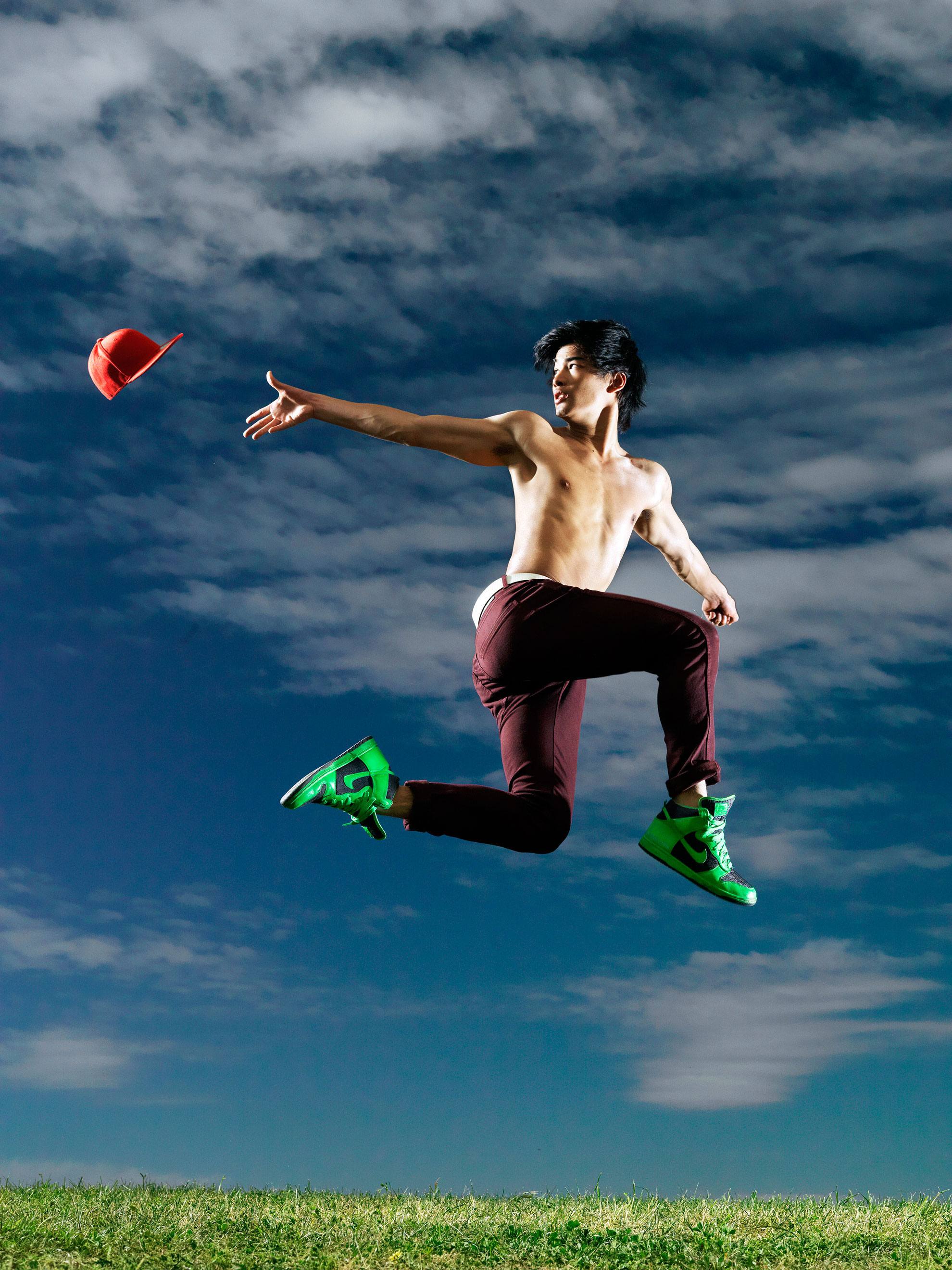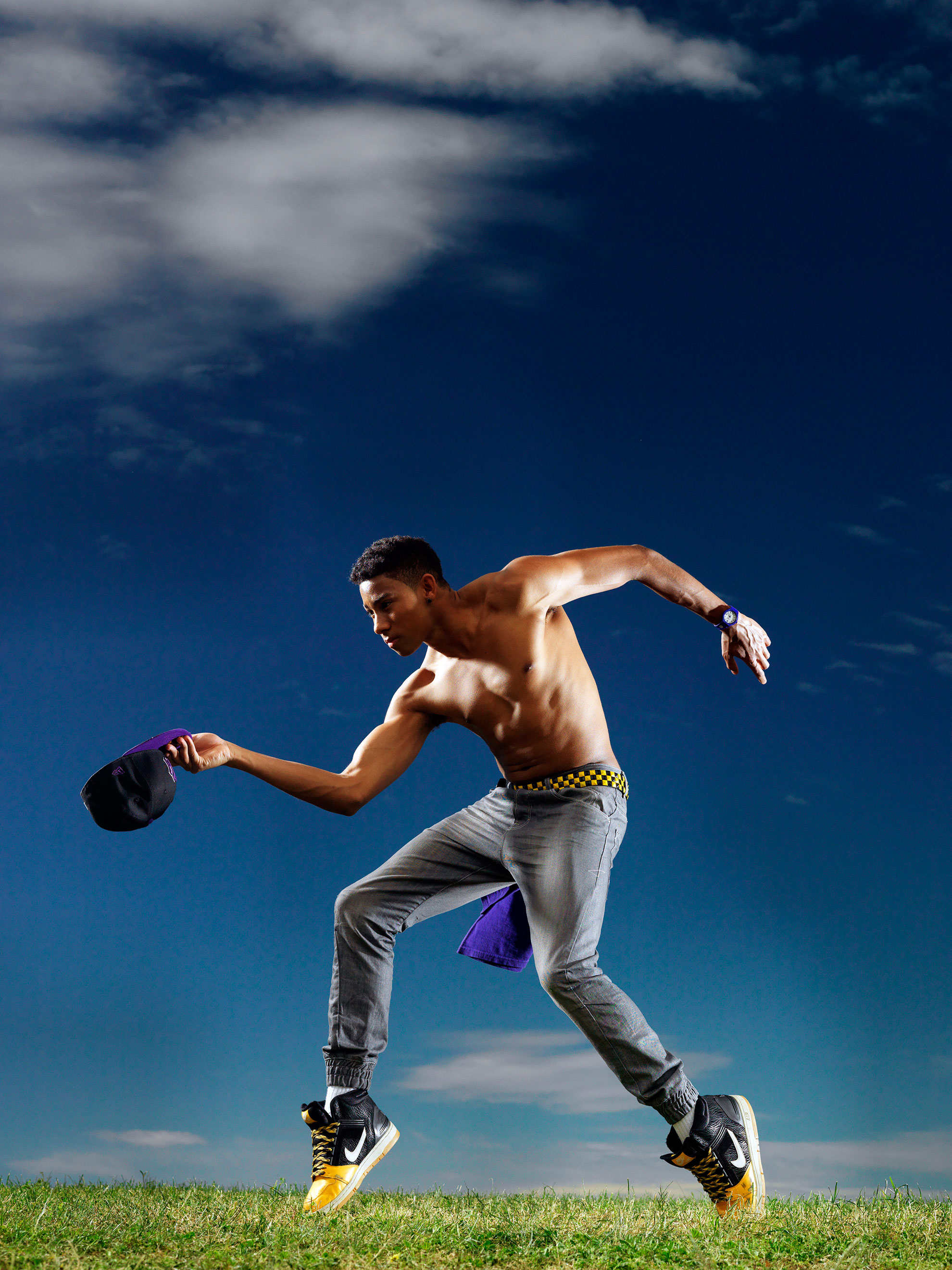 Shot on location in Newtown, this series of dance images use high speed flash balanced with daylight to freeze the motion. The fast moving cloud formations made for ever changing backgrounds.