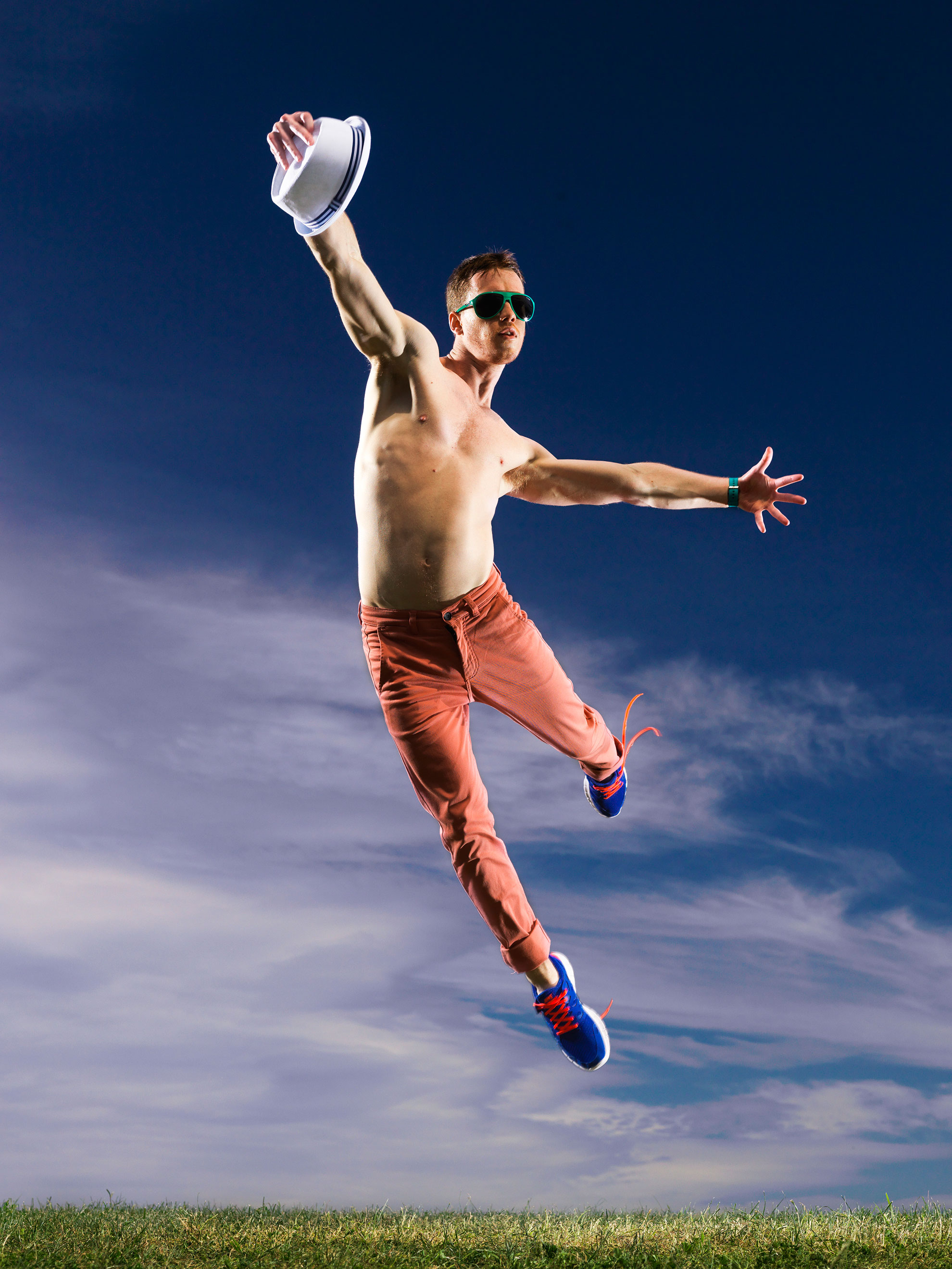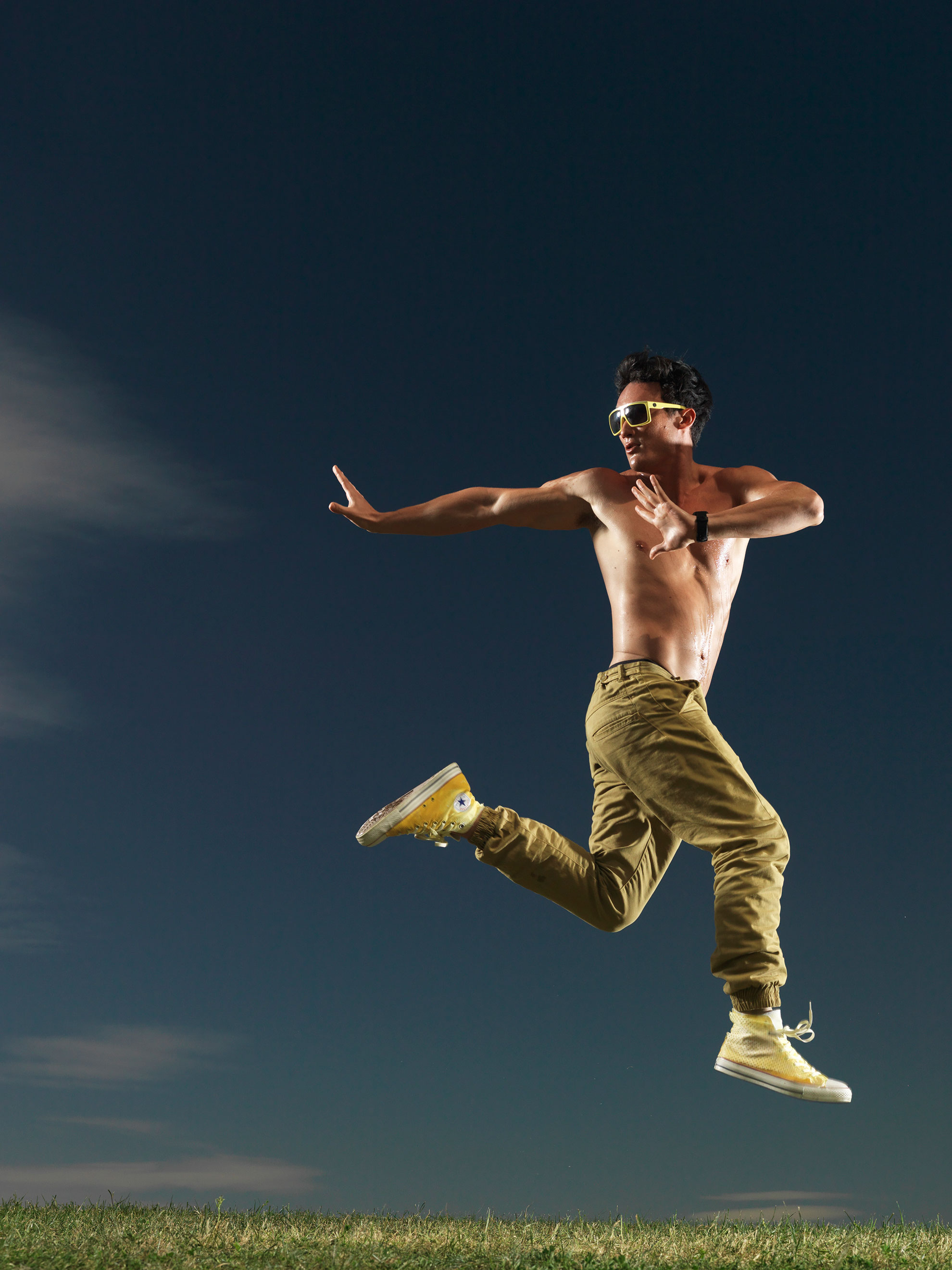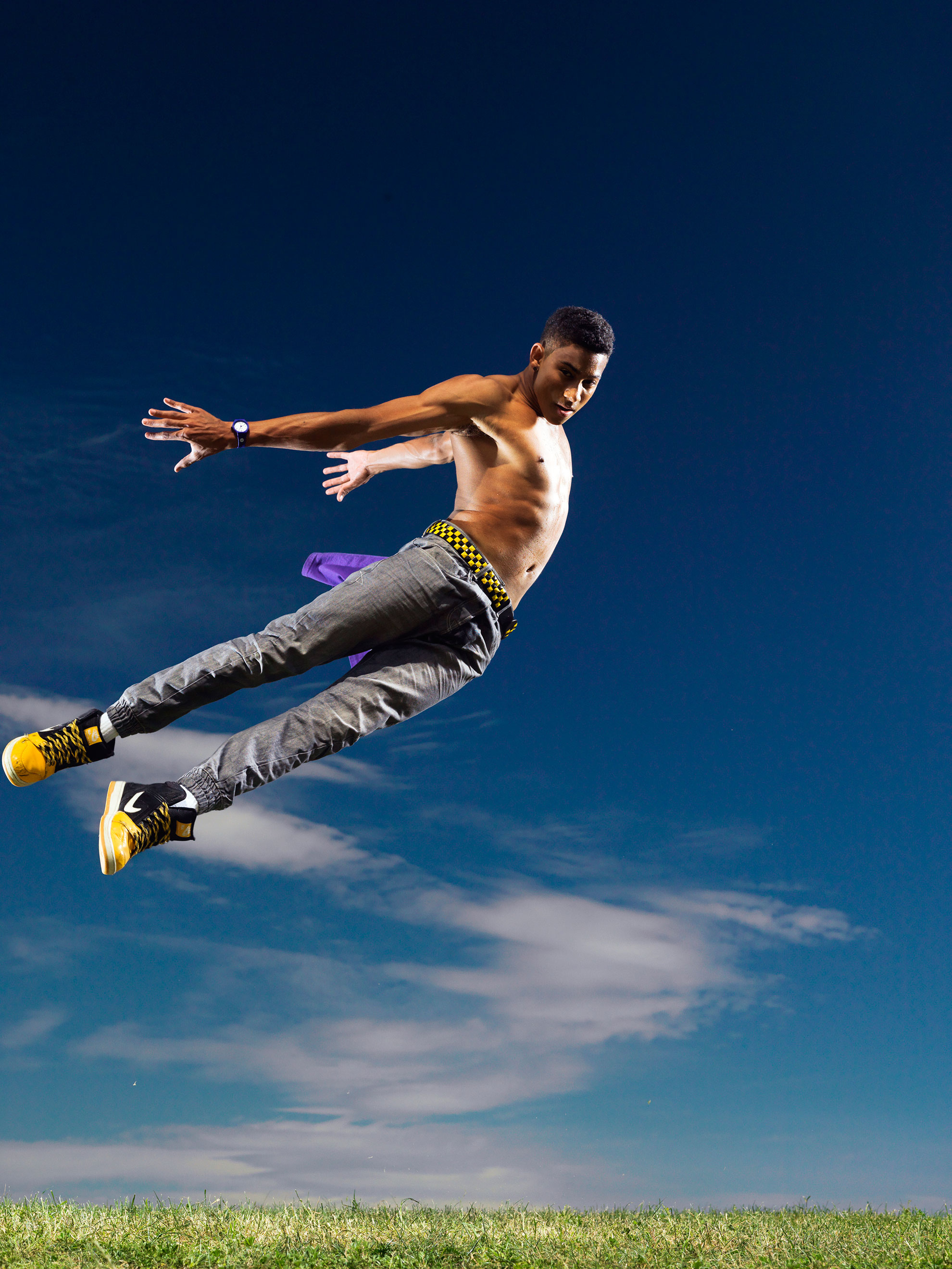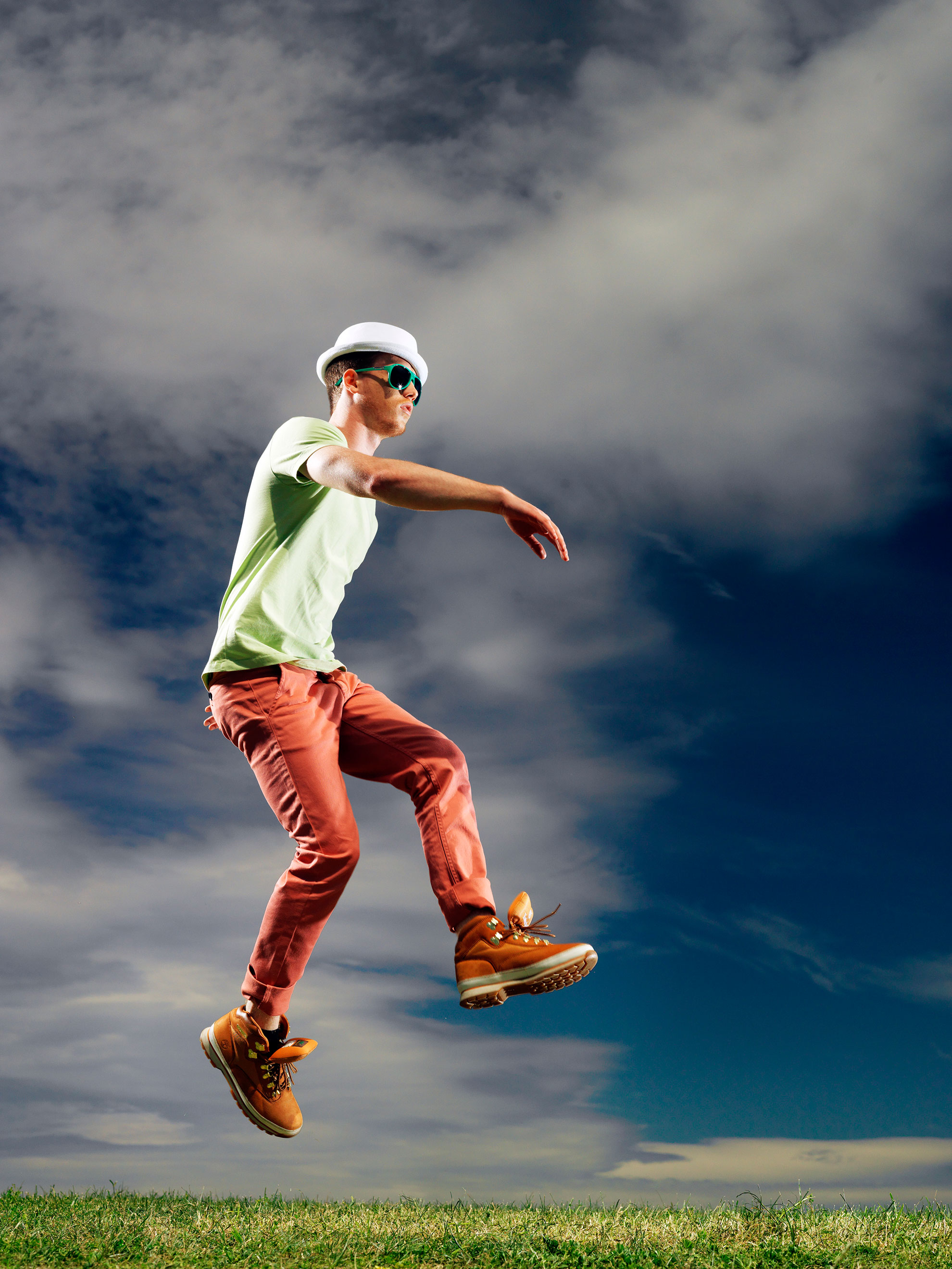 Shot on location in Newtown, this series of dance images use high speed flash balanced with daylight to freeze the motion. The fast moving cloud formations made for ever changing backgrounds.